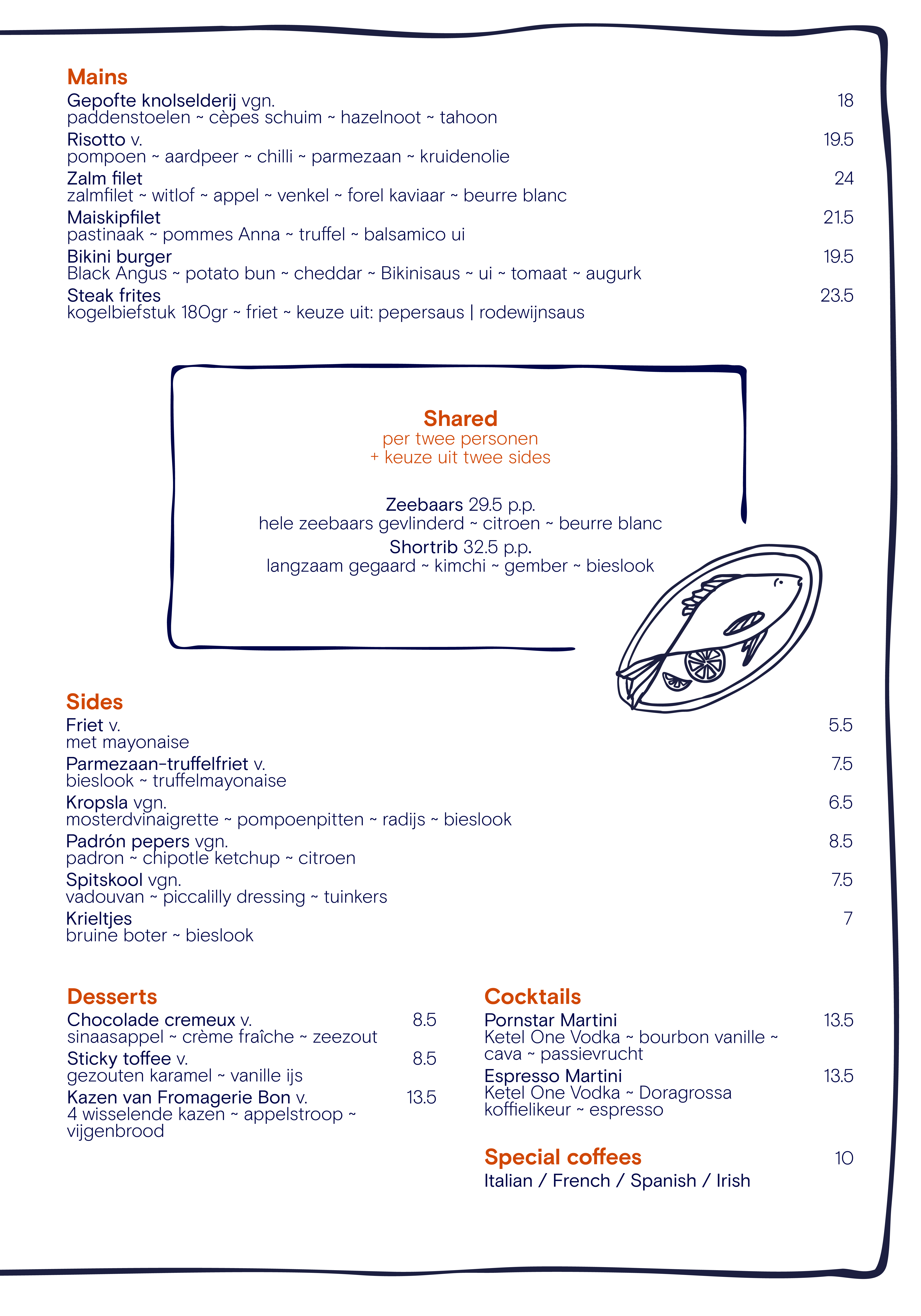 We zijn open op Kerstavond en Tweede Kerstdag met een speciaal feestdagenmenu naast onze vaste kaart. Reserveer hier.